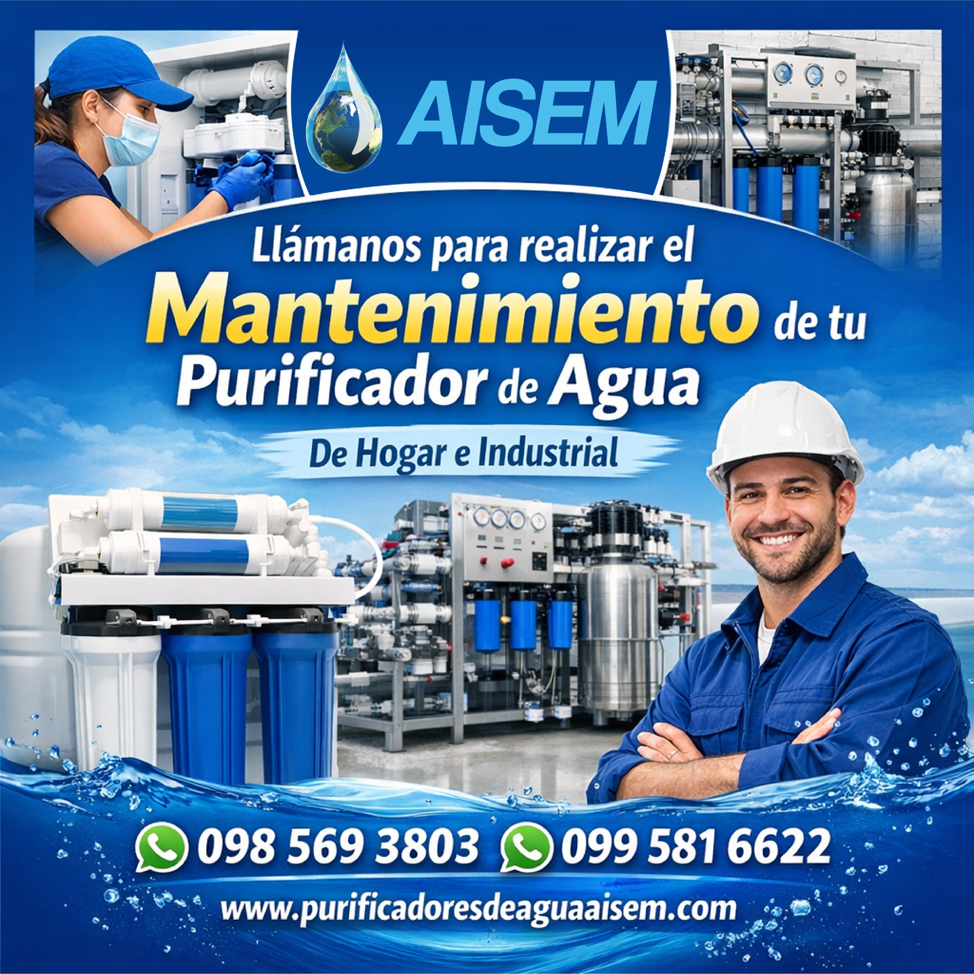 Purificadores de Agua AISEM es una empresa líder en tratamiento de agua en Quito, Riobamba Ecuador. Con más de 10 años de experiencia, nos dedicamos a proporcionar soluciones de purificación de agua de la más alta calidad para hogares y negocios.